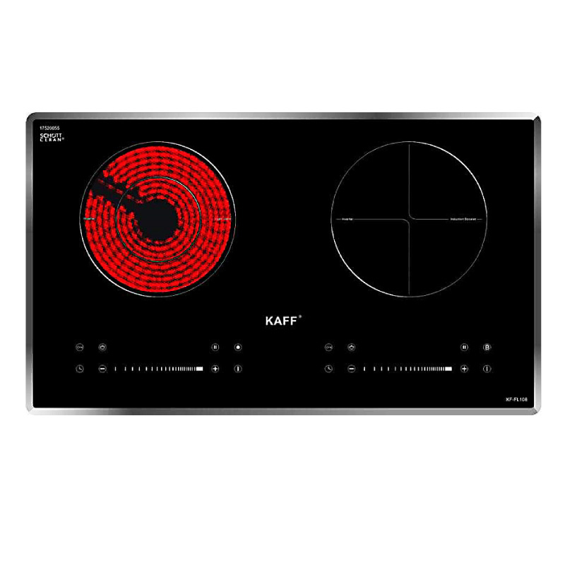 Bếp từ đôi hồng ngoại cảm ứng KAFF KF-FL108 thuộc dòng bếp điện từ cao cấp của thương hiệu thiết bị nhà bếp nổi tiếng tại Đức KAFF, là sự kết hợp hoàn hảo giữa 1 bên bếp từ (sử dụng các bộ nồi chảo inox từ, tiết kiệm điện và đun nấu nhanh hơn) và 1 bên bếp điện hồng ngoại (không kén nồi và có thể nướng trực tiếp trên bề mặt bếp) giúp cho cuộc sống của bạn thuận tiện hơn.