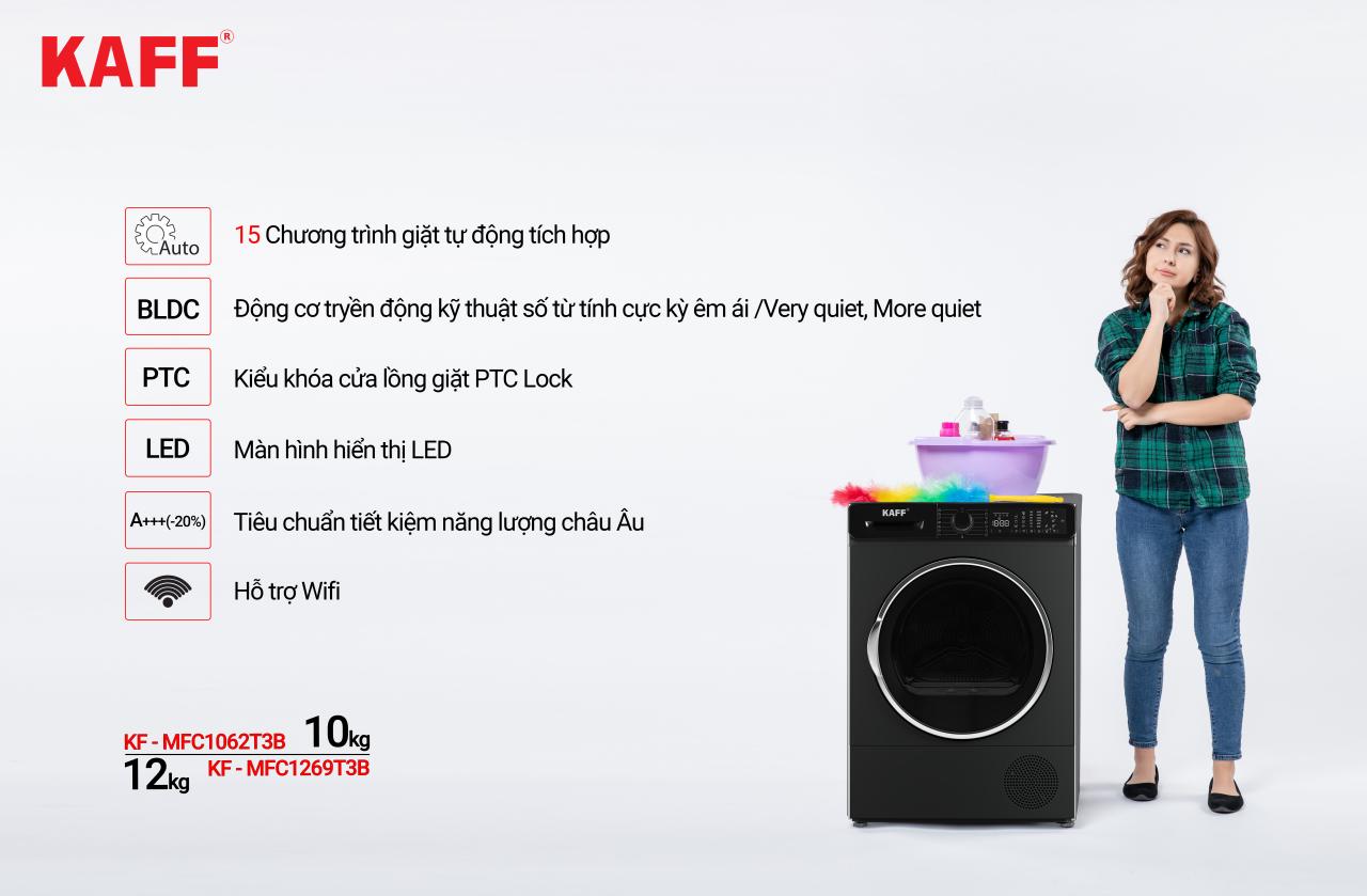 Nút bấm chọn tính năng: Giặt chờ lên đến 24h (Delay 24 hours) Chức năng hiện thị khóa cửa (Door lock indicator) Điều chỉnh nhiệt độ sấy theo ý muốn (Temp) Chức năng điều chỉnh tốc độ vắt khô (Spin) Chức năng Wifi (Wifi Function) Chức năng chống bọt (Foam protection) Chọn (Select) Chức năng: Hệ thống kiểm soát mất cân bằng (Unbalance control system) Bảo vệ chống tràn (Overflow protection) Hệ thống phát hiện lỗi (Failure detection system) Giảm tải độ ồn khi giặt (Mute Washing) Khóa trẻ em (Child lock) Khởi động chờ 3S (Press 3 seconds) Thêm tải (Reload) Giặt sơ bộ (Prewash) Giặt chuyên sâu (Intensive) Giặt nhanh (Speed Wash) Giặt thêm (Extra Rinse) Thẳng đồ dễ ủi (Easy iron) Chọn tốc độ vắt 0-600-800-1000-1200-1400 (Spin Speed Selection) |